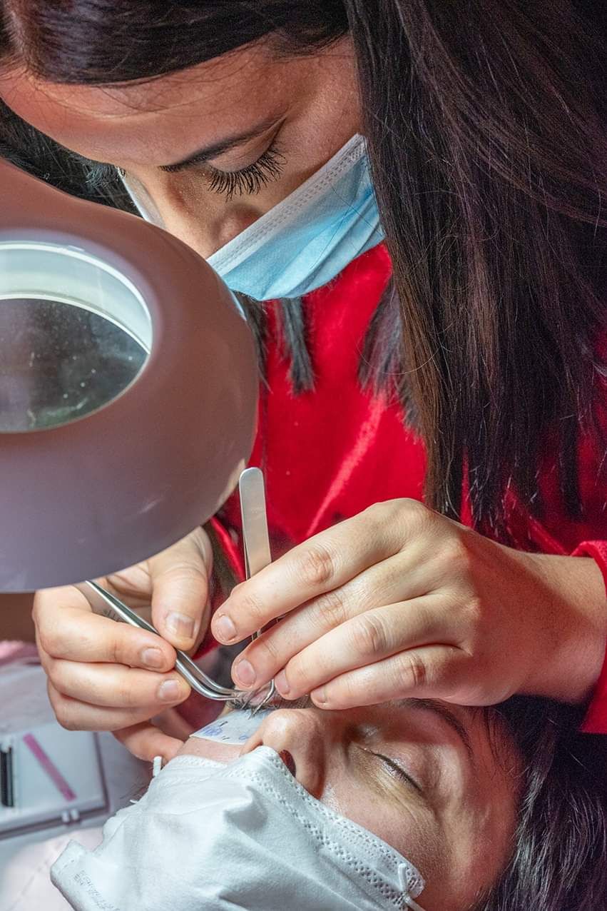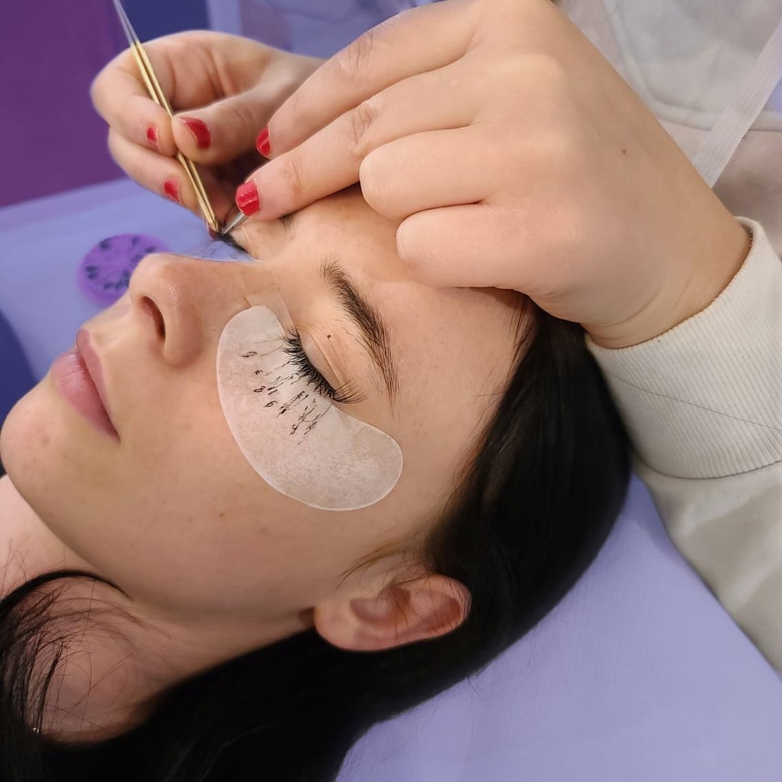 - • Application des extensions de cils sur cils naturels